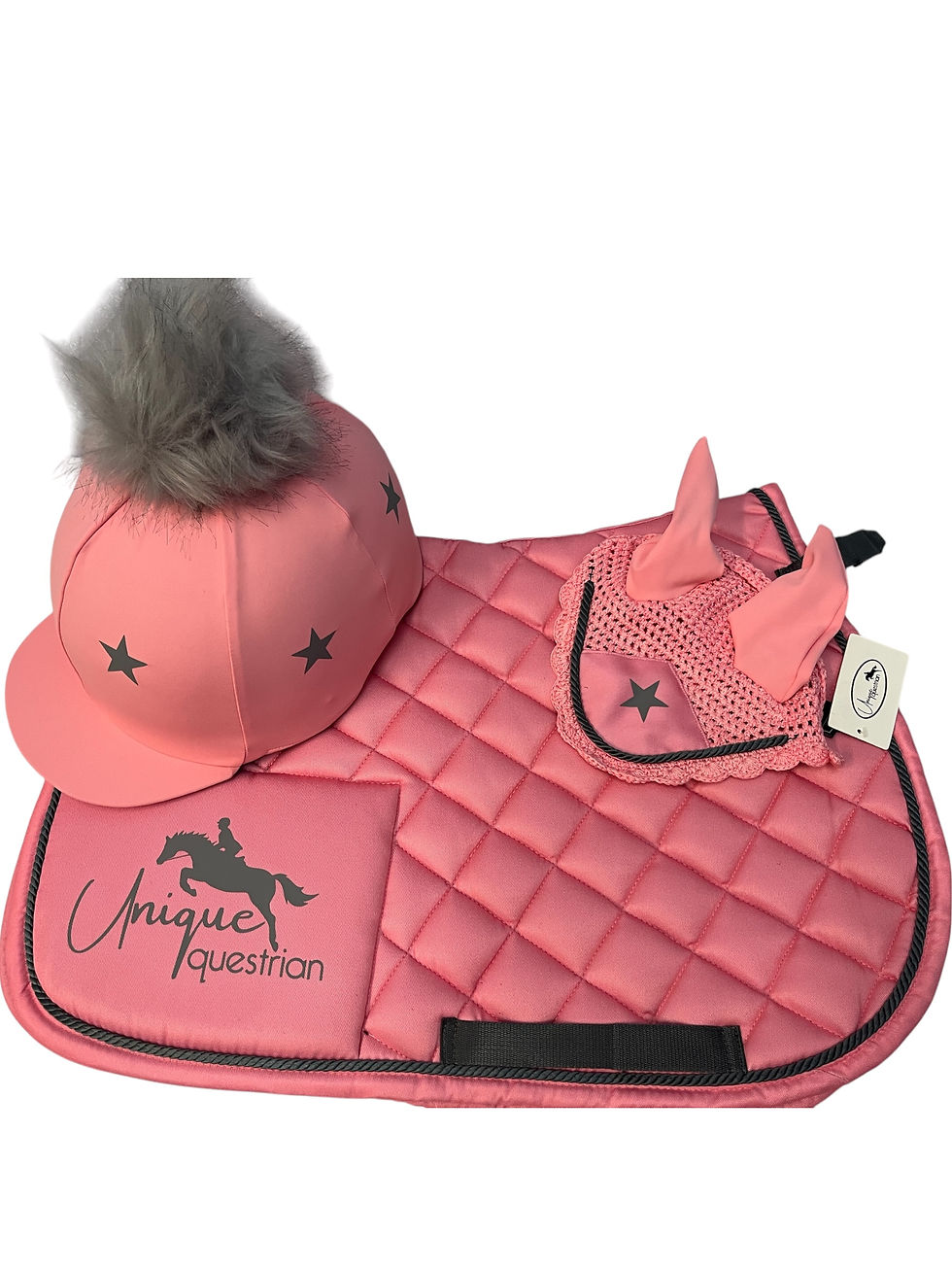 Stunning Saddle Pad Set in Our New Hot Pink with Horse Print Design